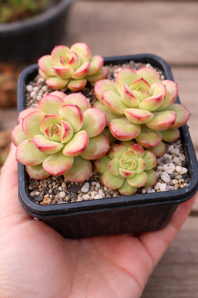 Ela forma rosetas compactas, com folhas espessas e acabamento fosco, que podem apresentar bordas rosadas quando expostas à luz adequada. Esse efeito visual faz com que a planta pareça quase artificial um dos motivos de sua popularidade.