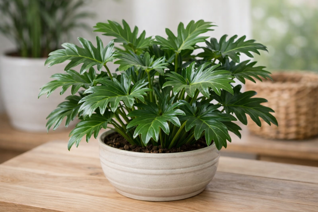 Em seguida, surge uma alternativa mais equilibrada à monstera. Compacto, resistente e adaptável à luz indireta, mantém presença ornamental sem exigir grandes espaços.