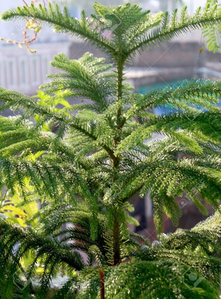 O Pinheiro-do-Norfolk (Araucaria heterophylla), muito utilizado no Brasil, pertence à família Araucariaceae. É uma conífera perene, de folhas triangulares e ramos simétricos. Em regiões temperadas, abetos (Picea) e outras espécies também são usadas como símbolos natalinos.