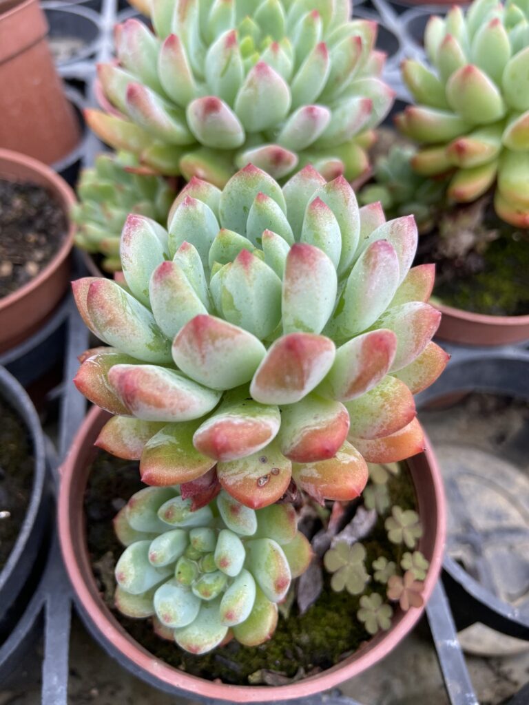 Introduzida no mercado ornamental há poucos anos, essa suculenta rapidamente se tornou uma das mais procuradas entre colecionadores. Sua coloração única e a textura perolada das folhas fizeram dela um ícone de raridade, especialmente em coleções minimalistas e de estética japonesa.