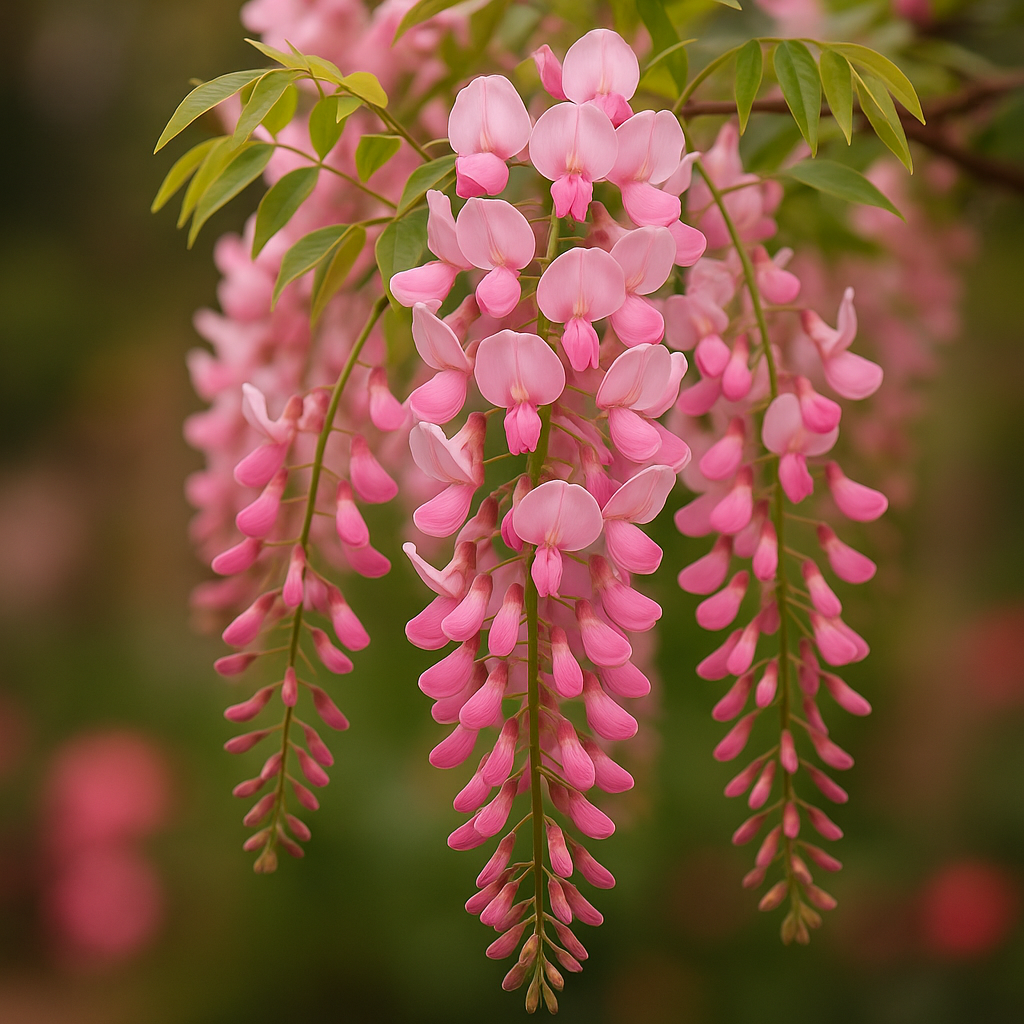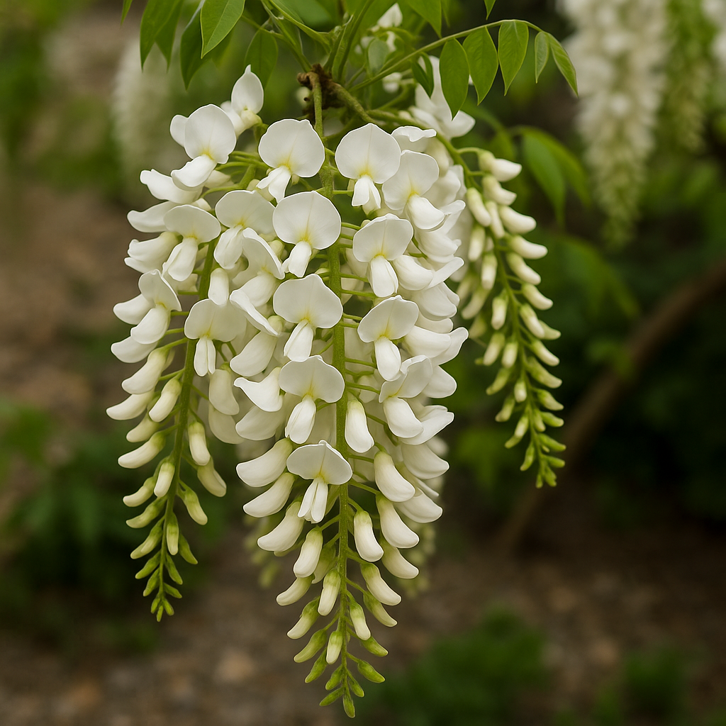 A glicínia (Wisteria sinensis, W. floribunda, W. frutescens, entre outras) pertence à família Fabaceae. Na Ásia, simboliza amizade duradoura, paciência e gratidão. Chegou à Europa no século XIX e logo entrou para o repertório de jardins românticos e claustros, onde sua floração pendente virou linguagem de cenário e de arte. A longevidade — há exemplares centenários — reforça seu papel de “herança viva” passada entre gerações.