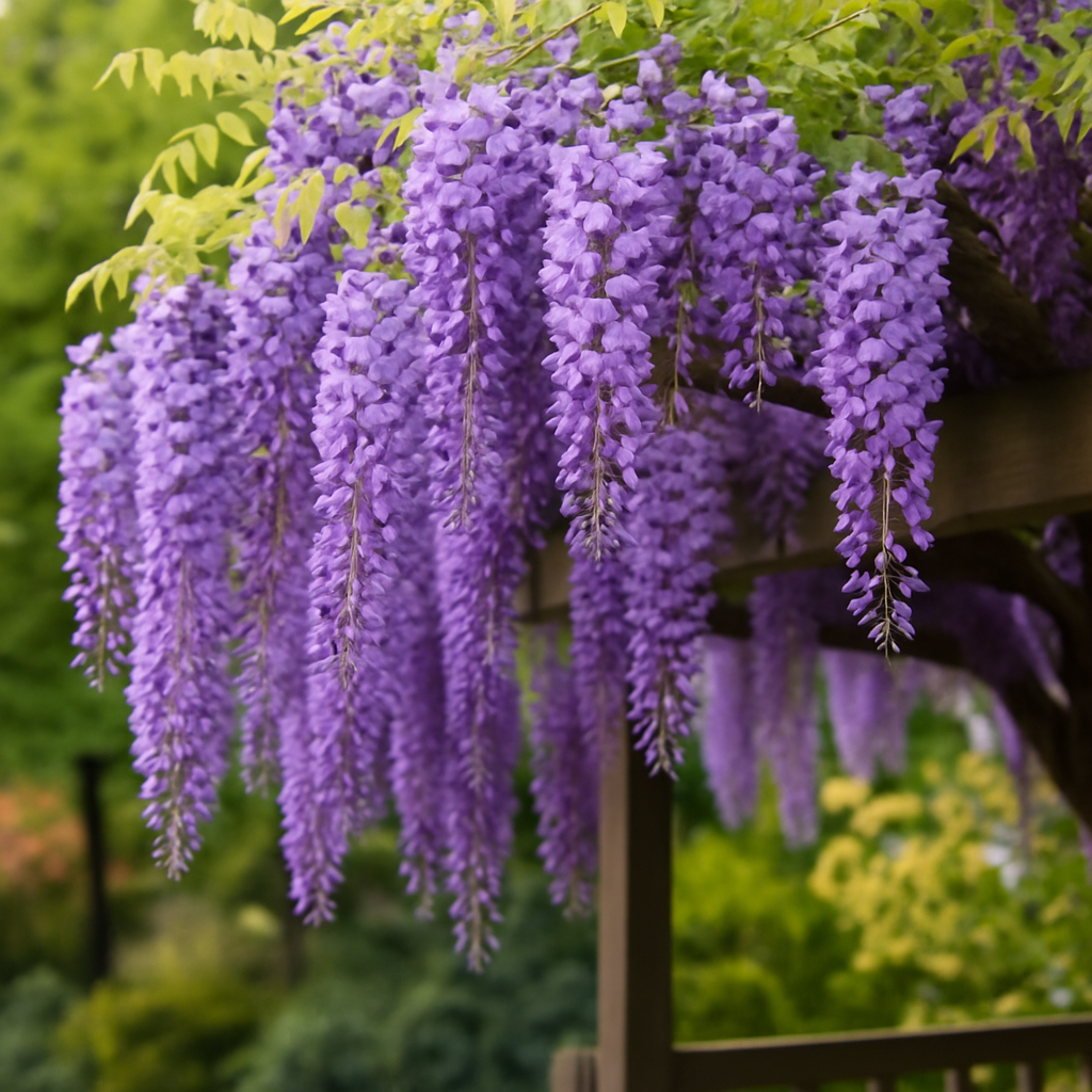 A floração acontece do fim do inverno ao início da primavera. Em muitas regiões, os racemos pendem antes da brotação das folhas, criando “catedrais” lilases. O perfume doce atrai abelhas e torna o passeio sob pérgolas uma experiência sensorial completa. No Japão, a fuji representa perseverança e amor que amadurece: a beleza que chega no seu tempo, após cuidado e constância.
